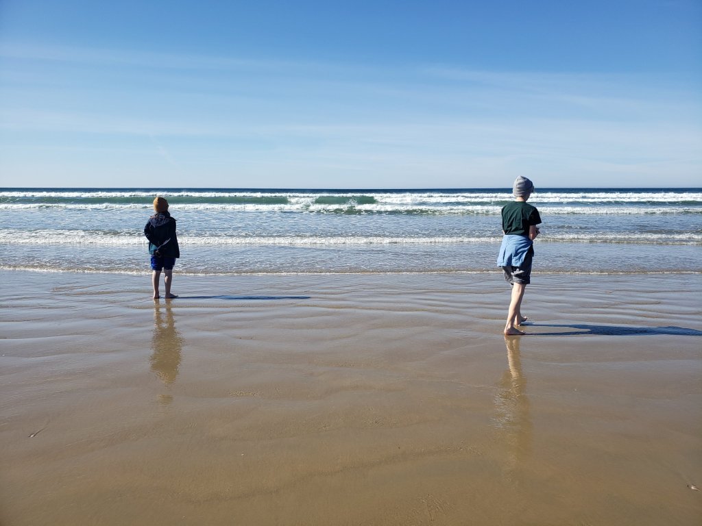 What I did not realize last time was that the beach is fairly close, too. So that was our next stop. There were some concerns that we were on the way to make the outing a hike but as soon as the water was spotted all was good again.
