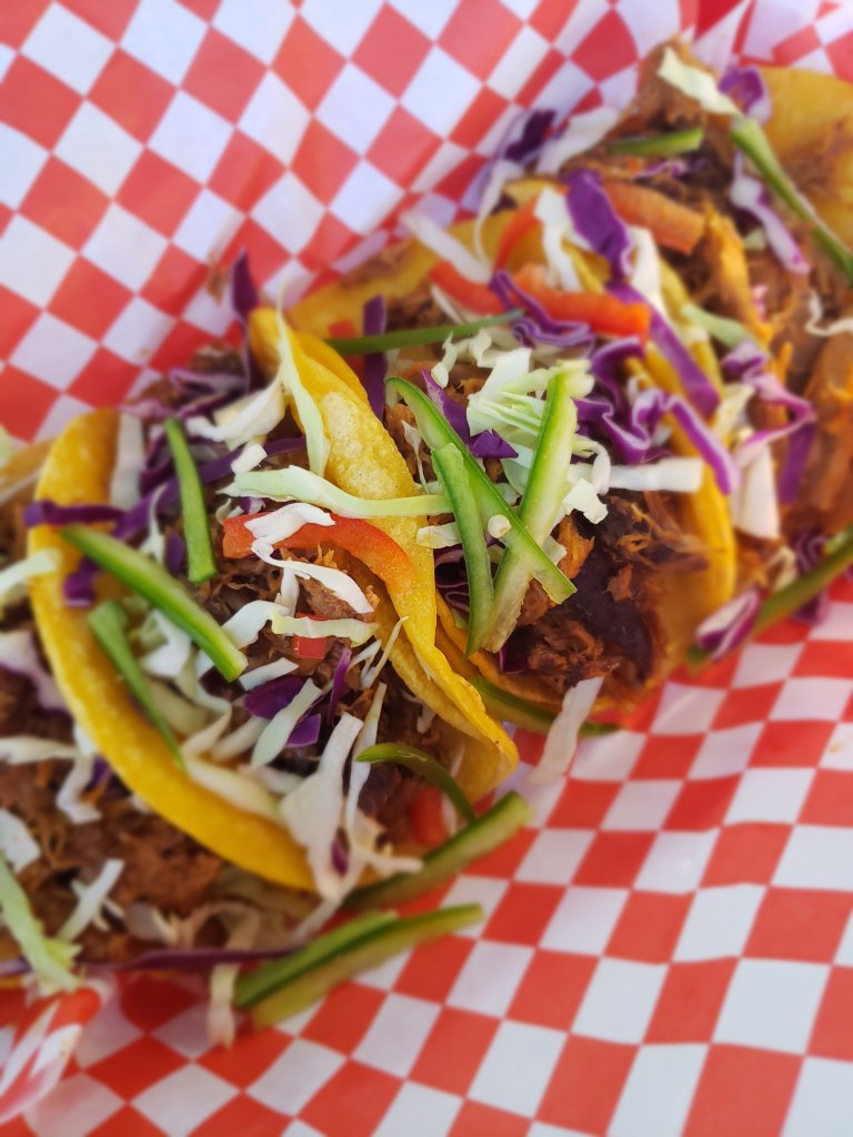 For lunch we stopped right next door at Hitching Post II. They had tables set up outside in the shade and the pulled pork tacos I had were very yummy. In the distance you got another view of the ostriches.
