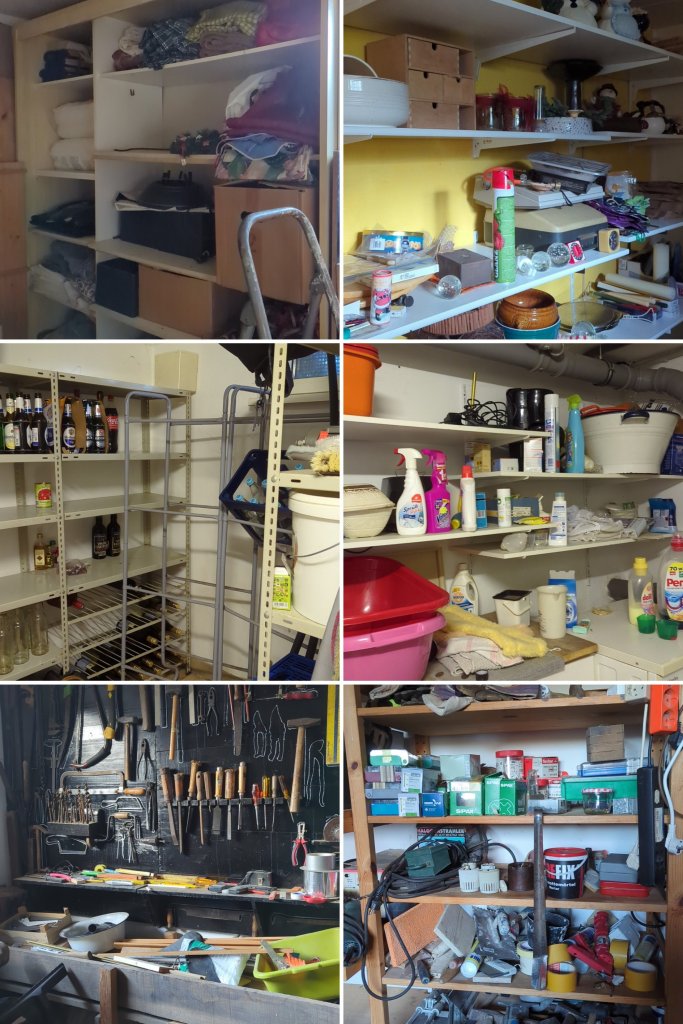 Above are mostly all the shelves in the basement. I found it, but I think I understand now what my husband is talking about.
